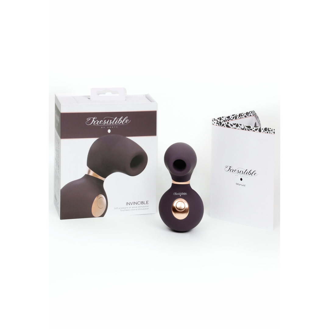 De Invincible heeft een superkrachtige new generation F1 motor met 10 snelheden. Deze voegt zich perfect naar de vorm van elke vrouw om het meest intense orgasme te creëren! De Invincible heeft een oplaadbare batterij met een magnetische USB-aansluiting en wordt geleverd inclusief oplader. Als hij volledig is opgeladen, gaat hij 60 min. mee. Het zachte, soepele en waterbestendige ontwerp is gemaakt van medische silicone, waardoor de Invincible makkelijk is schoon te maken.Touchless Airwave-technologieDe Irresistible Collection is niet zomaar een collectie seksspeeltjes. Ze zijn de beste seksspeeltjes op de markt voor vrouwen. Dat is een feit! Wat de Irresistible Collection zo bijzonder maakt is dat onze clitorisvibrator vervaardigd is uit hoogwaardige siliconen en dat hij uitgerust is met onze Touchless Airwave-technologie.De Irresistible Collection is de ideale combinatie van geavanceerde technologie, hoge kwaliteit, esthetiek en een ergonomisch ontwerp. De technologie werkt door de clitoris zachtjes en onrechtstreeks te stimuleren met elf verschillende intensiteitsniveaus van superzacht tot krachtig. Dit mooi ontworpen speeltje omringt uw clitoris zonder hem aan te raken en stimuleert hem via de zachte druk van luchtgolven, waardoor er een unieke weefselpenetrerende vibratie teweeggebracht wordt die niet behaald kan worden zonder het gebruik van deze technologie. (Geluidsgolven kunnen door verschillende media reizen, waaronder vloeistoffen en vaste stoffen. De gemiddelde golfsnelheid voor geluid in lichaamsweefsels is 1540 m/s en de snelheid van het geluid varieert ook naargelang het medium waardoor er gereisd wordt. Geluidsgolven reizen sneller door spierweefsels dan door vloeistoffen). Dankzij de creatie van onze Touchless Airwave-technologie zijn we in staat om de perfecte geluidsgolfpulsatie te creëren die door weefsel kan reizen en de uiteinden van de clitoriszenuwen stimuleert, waardoor u de diepste orgasmen ooit zult krijgen!Dit is geen vibrator zoals andere die uw clitoris kunnen irriteren of ongevoelig maken door overstimulatie. De Irresistible Collection leidt niet tot overstimulatie dankzij de Touchless Airwave-technologie. Bent u klaar om de meest intense orgasmen van uw leven te ervaren?VibratieDe Invincible (IRR003) en de Mythical (IRR004) zullen u doen trillen van plezier. Ze hebben een technologie waarvoor er een wereldwijd patent is aangevraagd die een contactloze zuigende sensatie op uw clitoris creëert via geluidspulsgolven en ze zijn uitgerust met de superkrachtige F1-motor van de nieuwe generatie met tien vibratiepatronen die passen bij om het even welke vrouwelijke vorm, waardoor u het meest intense orgasme ooit zult ervaren!Waterbestendig en hygiënisch verzegeld membraanDe Irresistible Collection is 100% waterbestendig met een IP70-beschermingsgraad (de hoogst mogelijke graad). Dit betekent dat u nu uw douchekop weer kunt gebruiken voor datgene waarvoor hij oorspronkelijk gemaakt is. De vibrator is ook uitgerust met een hygiënisch verzegeld membraan van medische kwaliteit om te vermijden dat er vloeistoffen in het mechanisme van het speeltje terechtkomen.