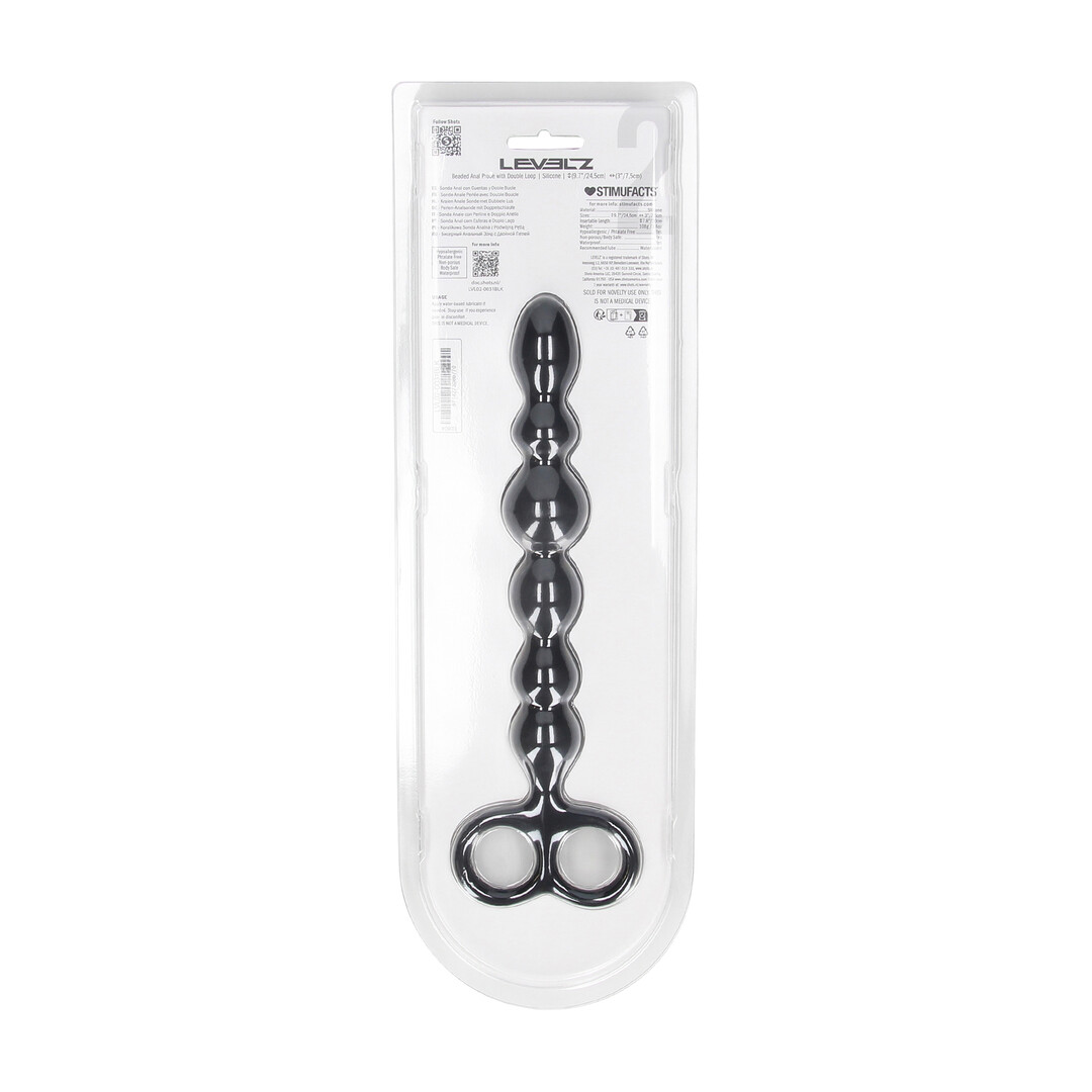 Level up your control and sensation with the beaded anal probe from the LEVELZ collection. Crafted from premium silicone, this Level 2 design features a slim, flexible shaft lined with smooth beads that build intensity with every insertion. The double loop base offers extra-secure handling and easy retrieval, making it perfect for deeper exploration or partner-assisted play. Designed for smooth gliding and responsive movement, this probe is built for users who crave a rhythmic, progressive anal experience. Packaged in a sleek clamshell for bold retail presentation.