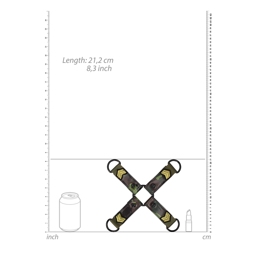 Neem een goede kijk op het verborgen geheim in de print, voel de stevige materialen en je weet dat je iets degelijks hebt. Met het sexy legerpatroon steekt deze hogtie echt boven de anderen uit. Gebruik het met pols- en/of enkelboeien en je zult zeker nergens heen gaan. De leger serie bestaat uit meerdere ondeugende speeltjes en accessoires, dus er zijn volop opties om je set uit te breiden.