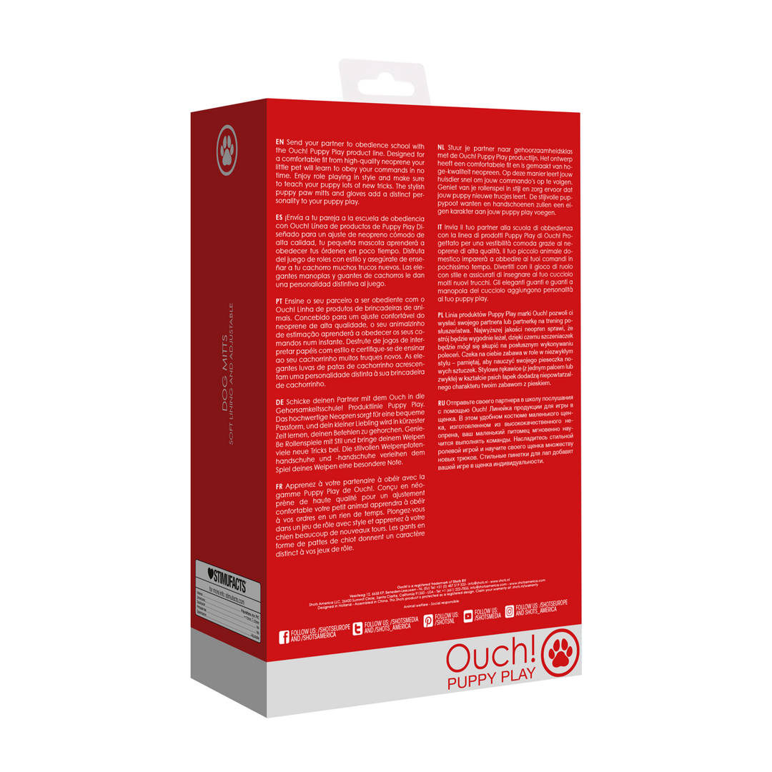 Stuur je partner naar gehoorzaamheidsklas met de Ouch! Puppy Play productlijn. Het ontwerp heeft een comfortabele fit en is gemaakt van hoge-kwaliteit neopreen. Op deze manier leert jouw huisdier snel om jouw commando’s op te volgen. Geniet van je rollenspel in stijl en zorg ervoor dat jouw puppy nieuwe trucjes leert. De stijlvolle puppypoot wanten en handschoenen zullen een eigen karakter aan jouw puppy play voegen.