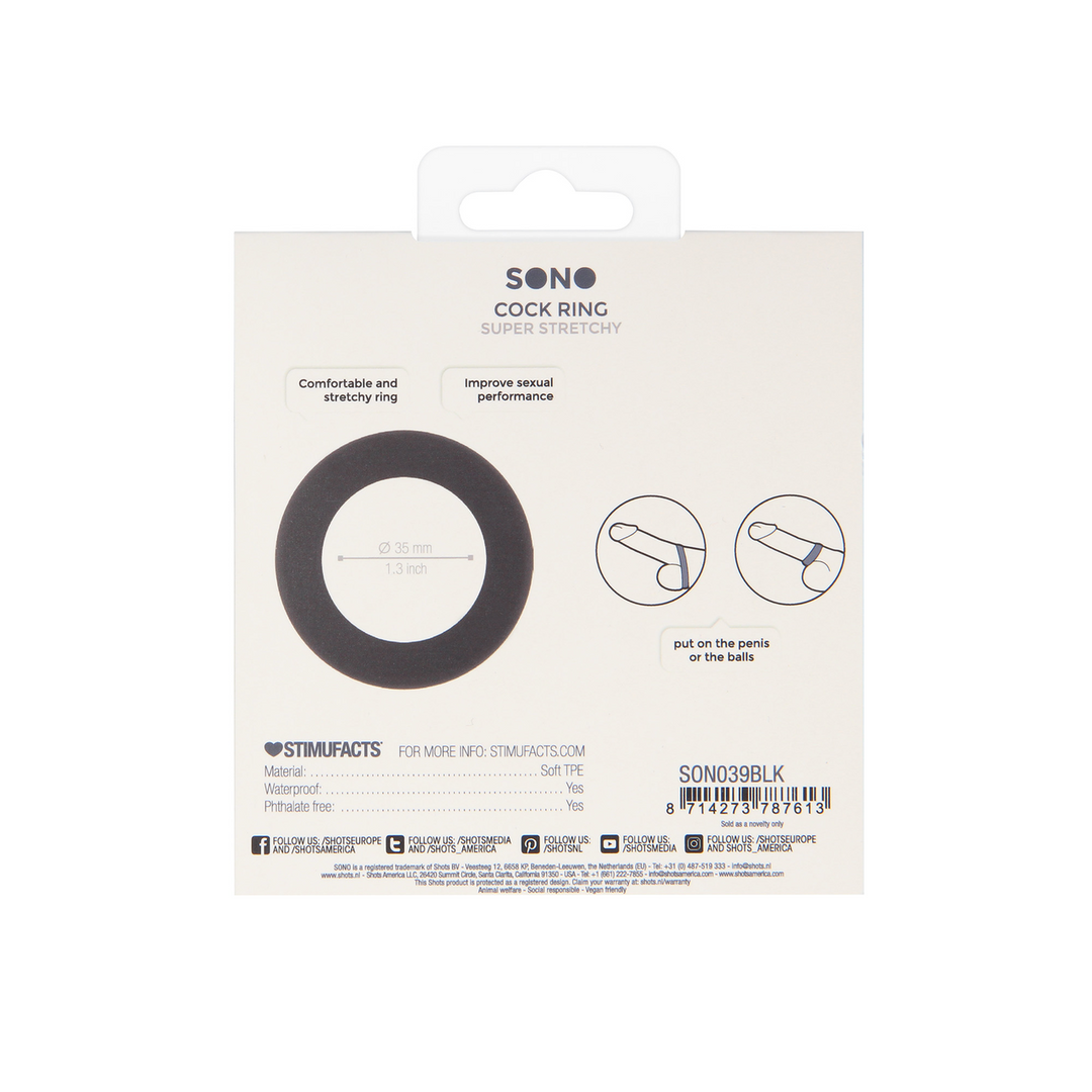 Heb je zin in extreem veel plezier? Dan moet je deze cockring proberen. Hij zorgt ervoor dat je penis de gewenste stijfheid krijgt en hij voorkomt een vroegtijdige ejaculatie. Je zal dol zijn op de simpele vorm van deze cockring en omdat hij van TPE gemaakt is, past hij zich zeer makkelijk aan aan jouw vorm. Hij is te verkrijgen in 2 verschillende kleuren: zwart en transparant
