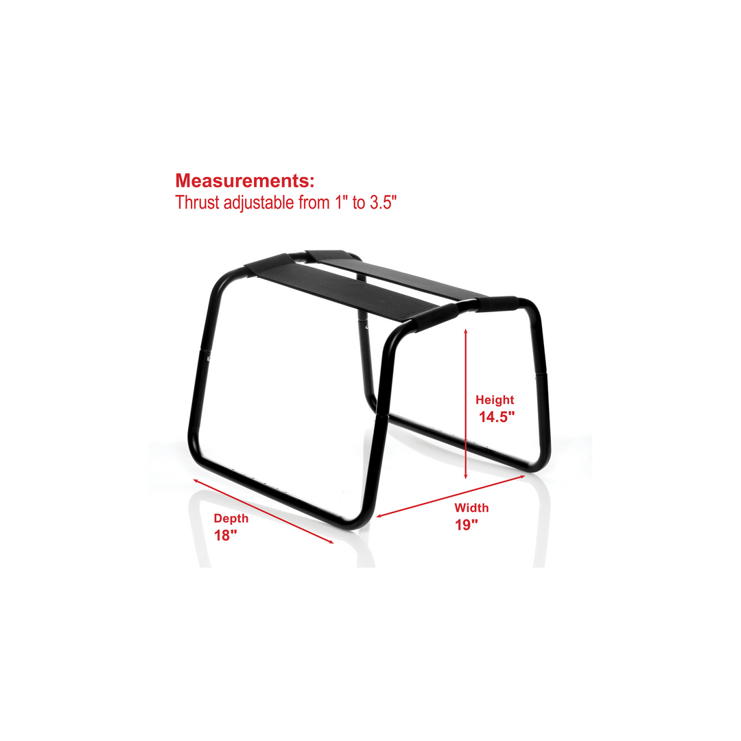 Kies tussen een verende stoel of een stevige, gedempte stoel… kies vervolgens tussen een seksmachine, je favoriete dildo of het gezicht van je partner! De nieuwe 4 in 1 Bangin Bench is veelzijdiger dan ooit, met een nieuwe manier om comfortabel te worden en een nieuwe manier om geneukt te worden.Geniet van handsfree extase met een verwijderbare seksmachine die zelfs op zichzelf kan worden gebruikt! Klik de gevoerde kussens op hun plaats en zet vervolgens de basis van de machine vast met de meegeleverde zuignappen, zodat de dildo op de gewenste locatie omhoog steekt. Het optionele verlengstuk is zelfs flexibel, zodat je de dong in je ideale hoek kunt richten. De meegeleverde dildo is stevig zoals jij het wilt, maar zacht en vleesachtig met een aderige textuur en een gedurfde kop. De vacuümgreepbevestiging kan worden gebruikt met andere compatibele dildo’s, zodat u uw rit kunt aanpassen. Gebruik de bedrade multi-speed dial om de penetratie te verkennen met maximaal 150 stoten per minuut. Je kunt ook de stuwkrachtlengte aanpassen van 1 inch tot 3,5 inch. Zin om nog meer controle te krijgen? Bevestig je favoriete zuignap-dildo aan de rode metalen stijgbuis, of gebruik het meegeleverde harnas om een brede dong vast te zetten en op en neer te stuiteren op de rekbare zitriemen om jezelf vast te schroeven. Gebruik het on die van jezelf voor doordringende intensiteit op jouw voorwaarden, of geef een show voor je partner om te laten zien wat je over de rand brengt. Je kunt zelfs de verhogingsstang en de seksmachine verwijderen en gebruiken als Queening-kruk, schrijlings op het gezicht van je geliefde terwijl ze je van onderaf plezieren! De Bangin Bench is eenvoudig op te zetten en discreet op te bergen, met een duurzaam stalen frame dat duurzaam Gebouwd. De meegeleverde dildo is compatibel met siliconen en glijmiddelen op waterbasis. Na gebruik reinigen met milde zeep of toycleaner.